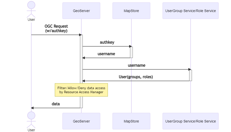 With the suggested implementation the MapStore database will be also a UserGroupService and a RoleService for GeoServer. This means that every user of MapStore will be also a user in GeoServer, with the same attributes, the same roles (ADMIN, USER) and the same user groups.