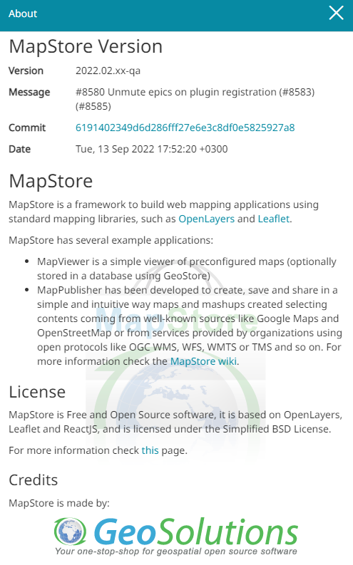 Know more information About MapStore and the deployed Version of MapStore by clicking the