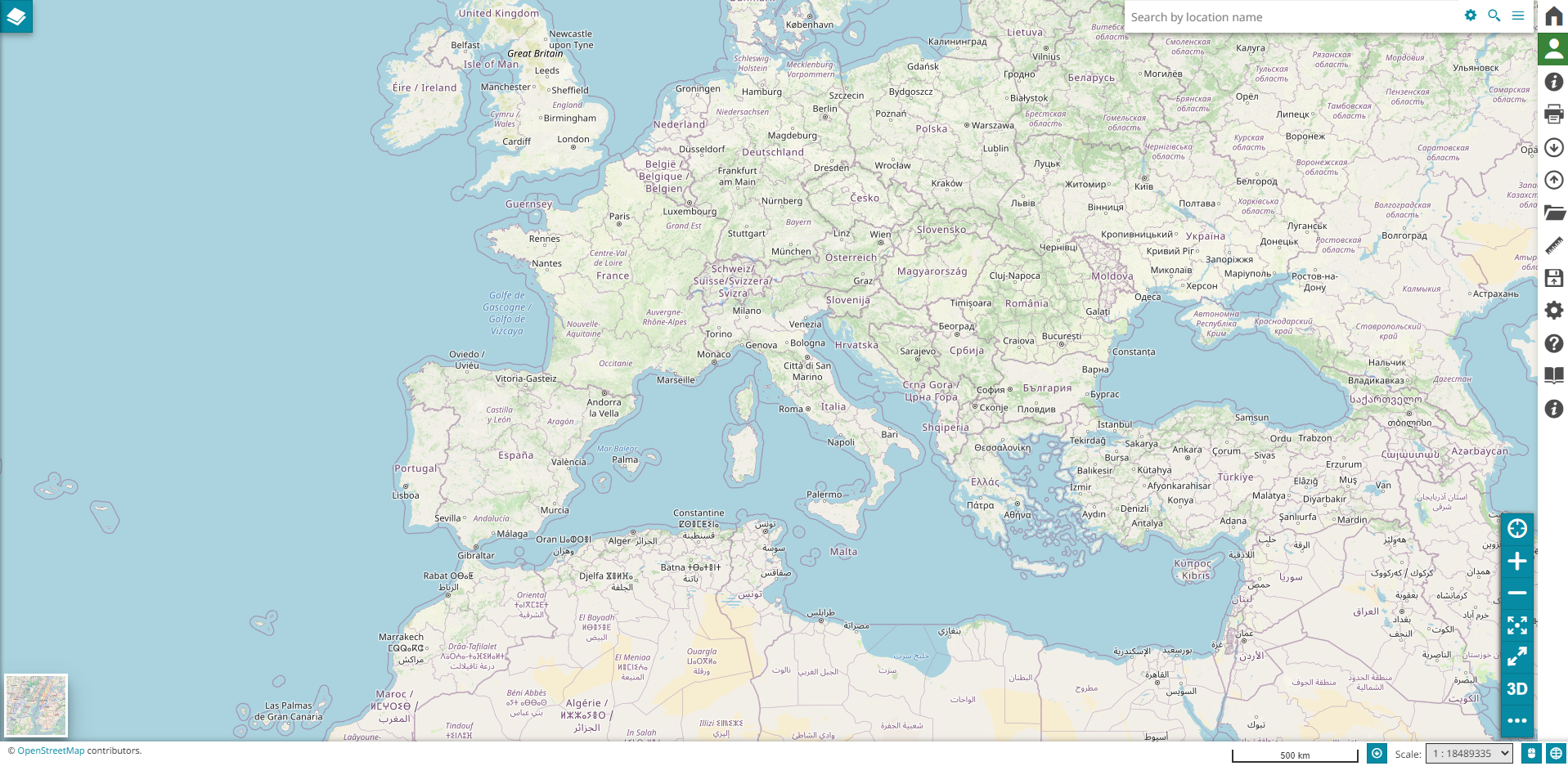 In cartography, a map is any two-dimensional graphic representation of the spatial relationships of the whole or a part of the earth. In digital cartography as in MapStore, a map consists in overlaying various layers of geographic data and their styles in data frames, and it contains various map elements such as a legend and a scale bar.