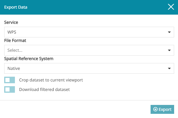 Select the File Format. The list of formats depends on the availability of the WPS Download process in GeoServer. If the WPS process is available, the user can choose between