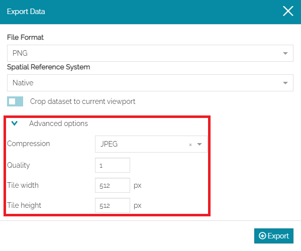 Enable the Crop dataset to current viewport for downloading only the part of the layer visible on the map at that moment (this option is present in the form only if the WPS Download process is available)