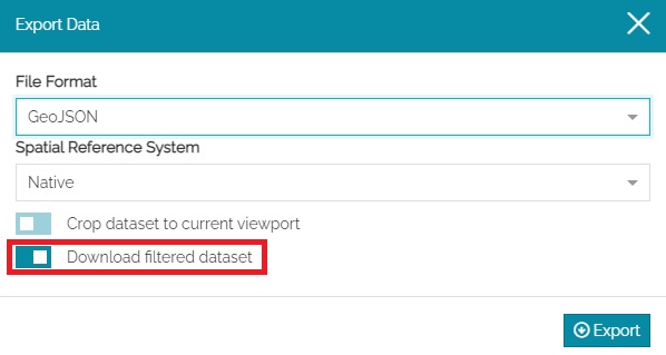 Only for Vector layer, allows to consider for the download also an eventual filter applied to the layer using the Filter layer tool (this option is present in the form only if the WPS Download process is available)