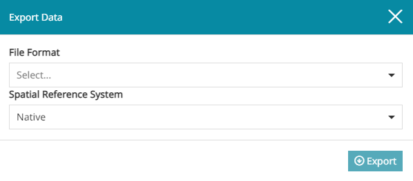 If the WFS service is the only one available, once the Export Data opens, the user can only select the File Format and the Spatial Reference System (as explained below).