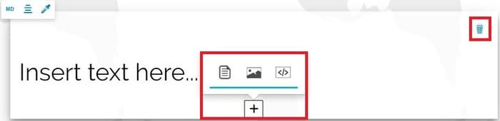 Once a media (image, video or map) is added to the background, an editing toolbar appears in the upper left corner of the section allowing the user to manage the background content.
