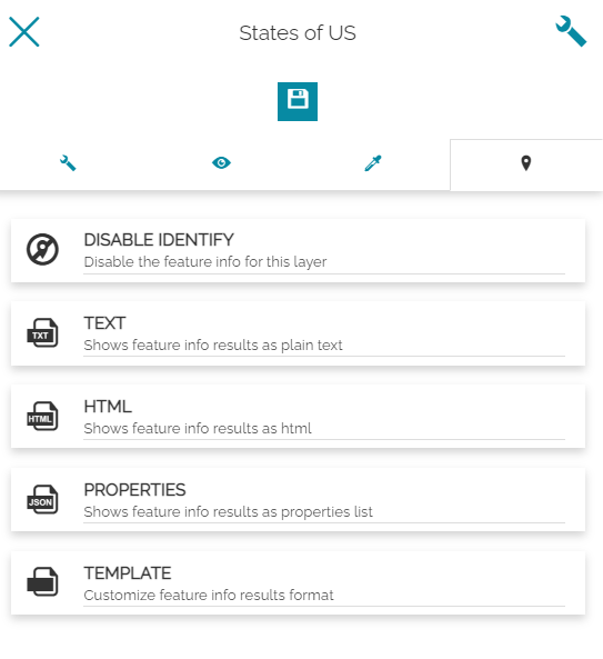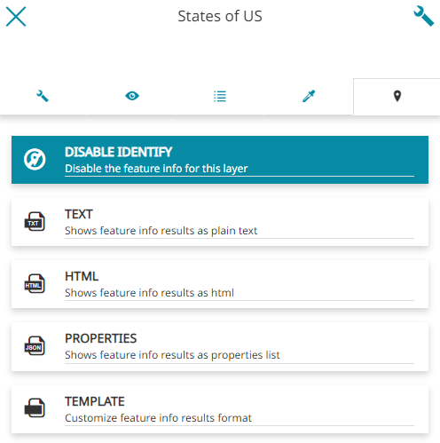 Through the last section of the layer settings panel, it is possible to decide the information format that appears querying a layer with the Identify Tool: