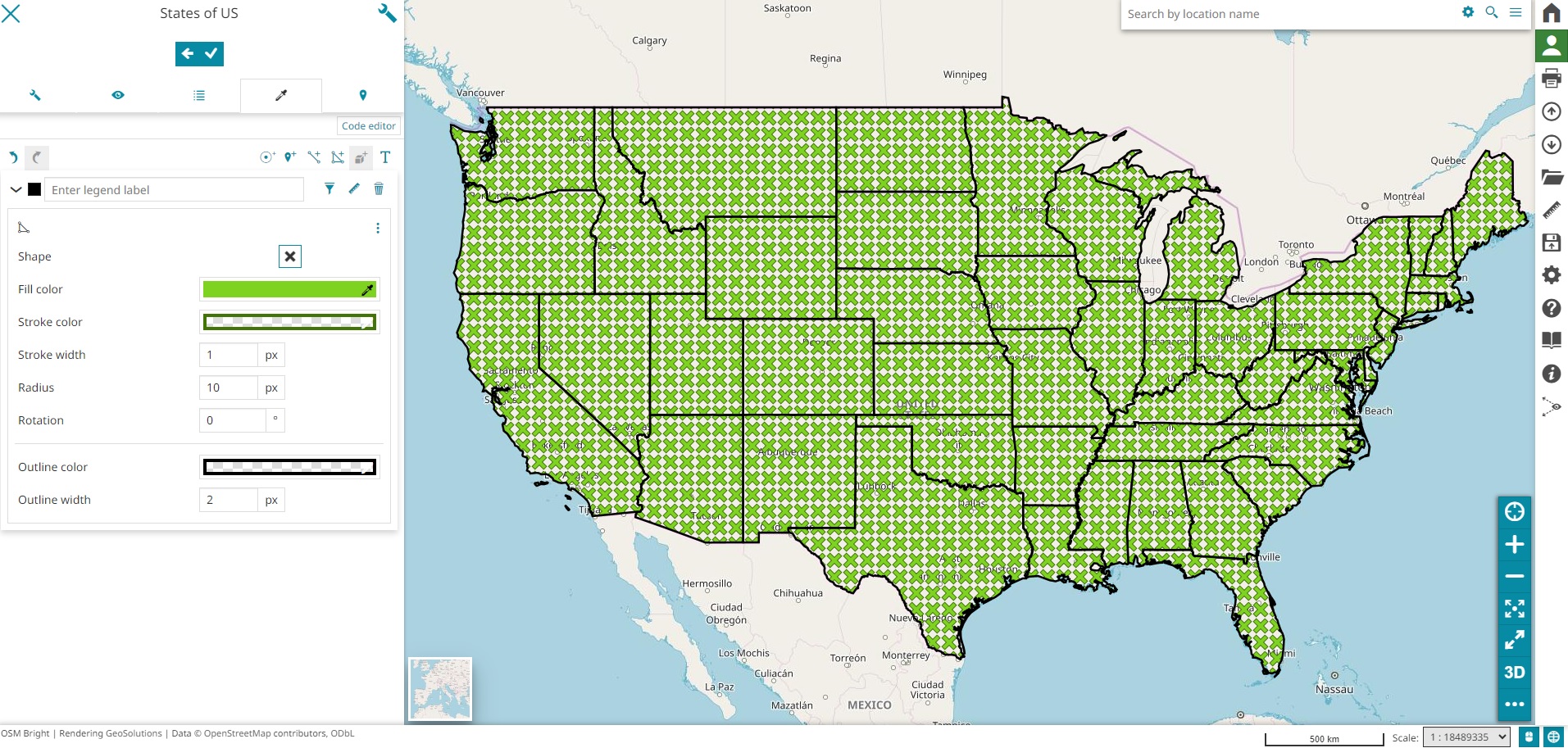 In 3D mode MapStore allows to customize the style of the Vector layer through the Visual Style Editor using the same styling options available in 2D mode as described in the previous chapter.