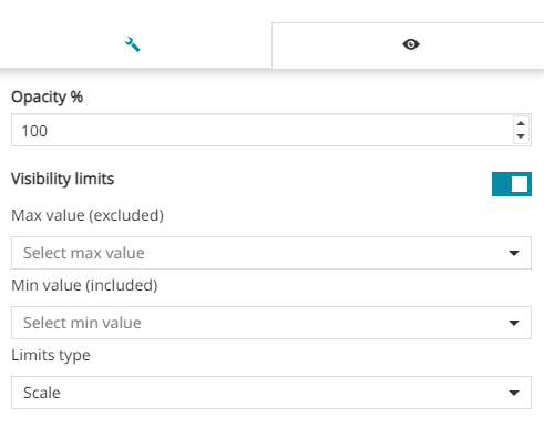 Enable/disable the Visibility limits to display the layer only within certain scale limits. The user is allowed to request the