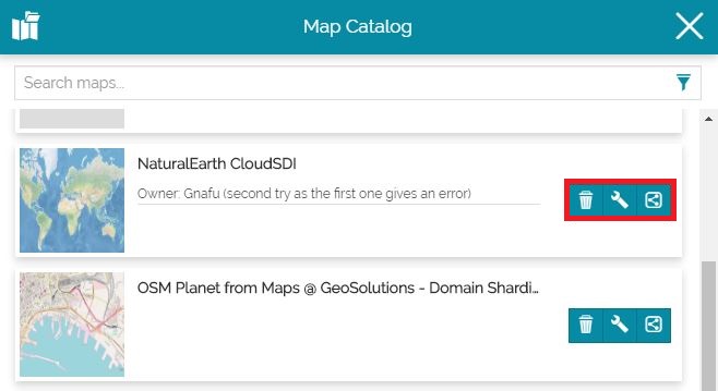 For each map in the Map Catalog list the following buttons are displayed: